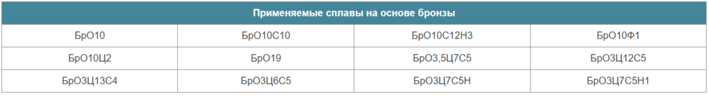 Для виготовлення деталей із бронзи використовуємо такі марки: