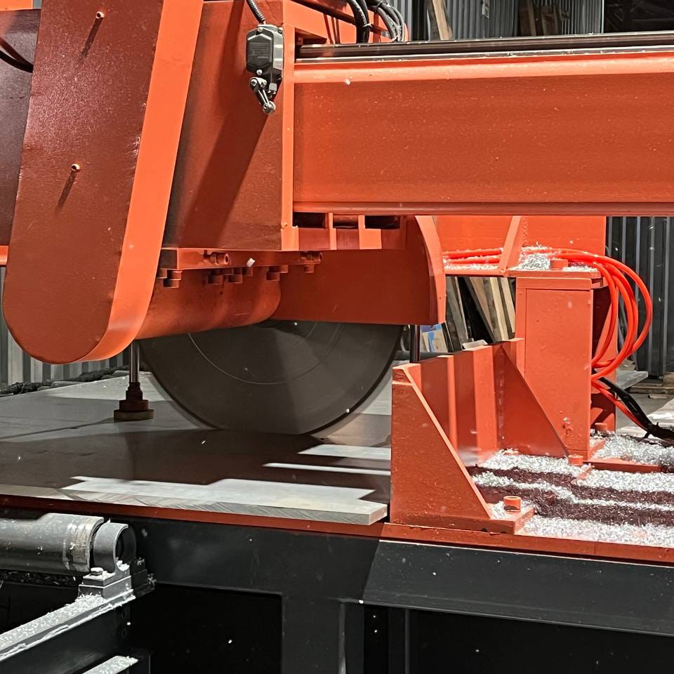 Різання металу на поздовжньо-фрезерному верстаті. Застосовується для розпилювання плит та листів металу, переважно алюмінію. Допустима товщина розпилюваних листів/плит – 8-200 мм, ширина листа/плити обмежена 1500 мм.